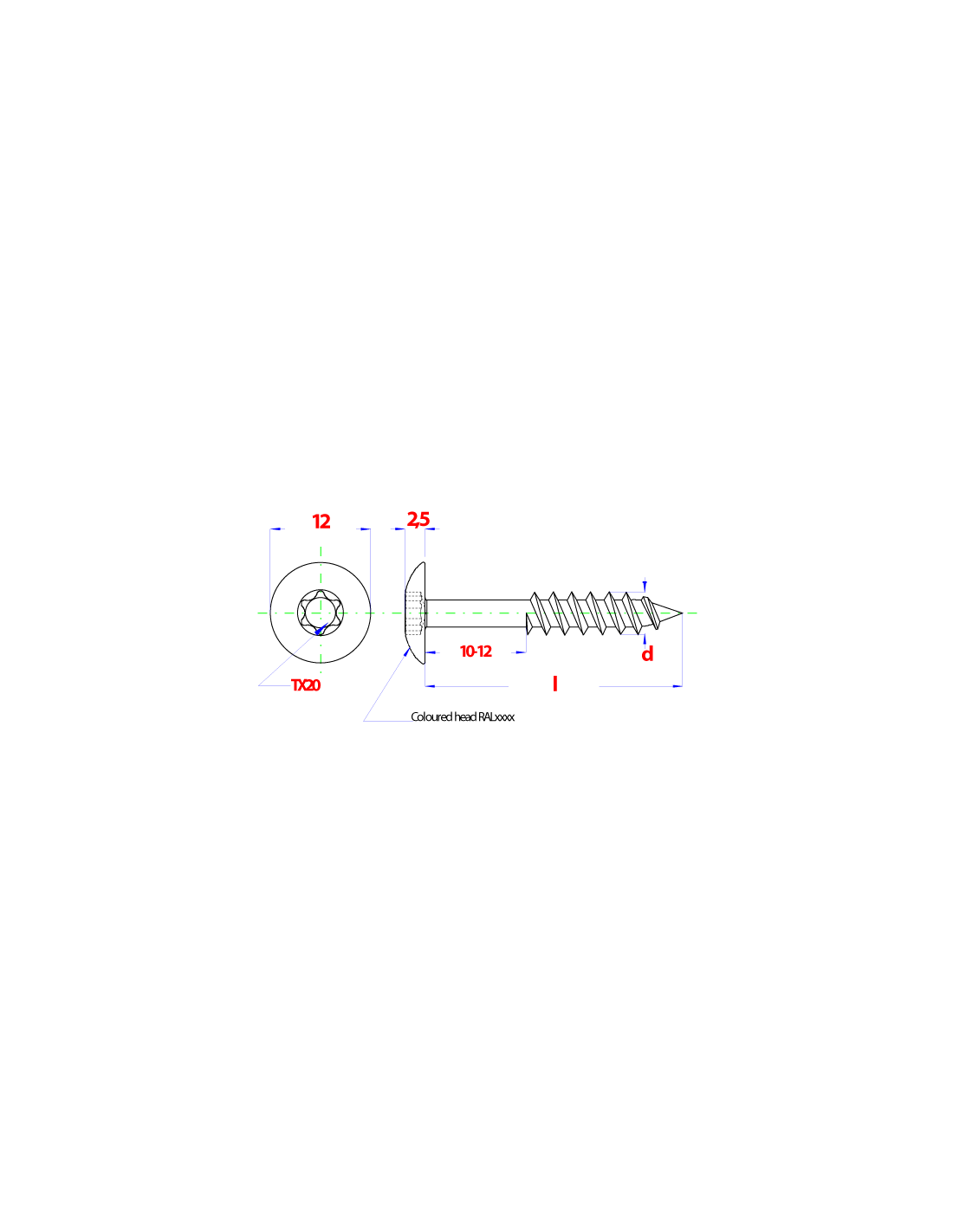 Platbolkopschrf Trespa * 4,8x 38x5011 A2 indruk T20 - RAL (5011) (100st)