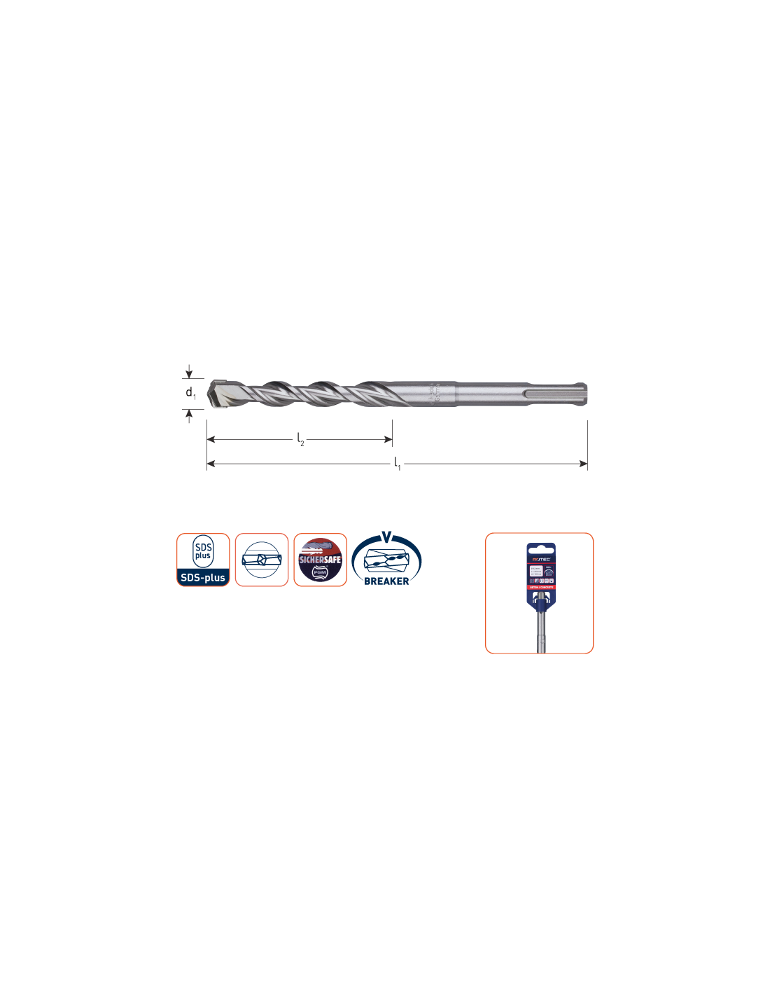 Hamerboor met SDS-plus aansluiting (ø10mm), speciale kernversterkte spiraal en een hardmetalen tip met uniek ontworpen geometrie.