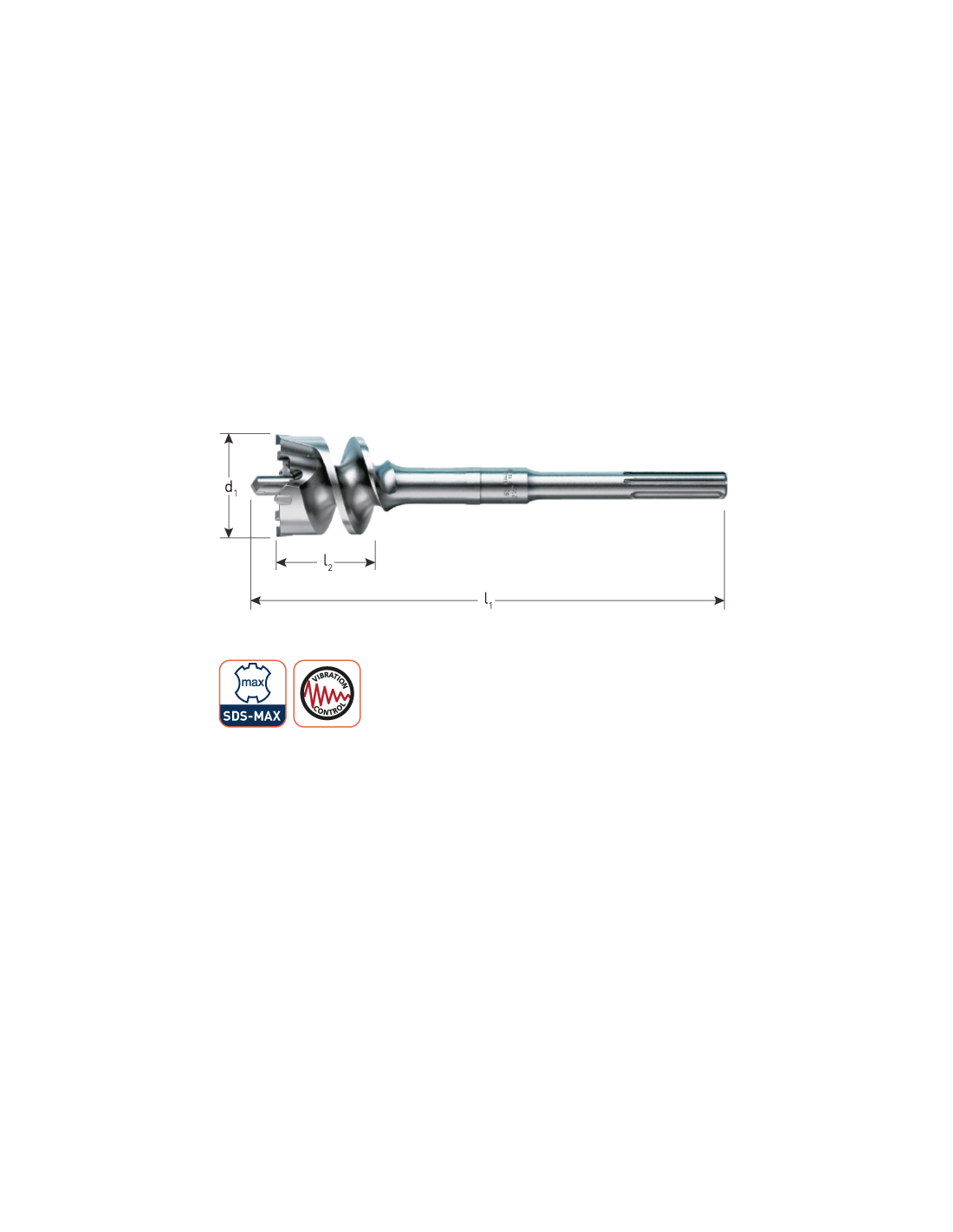 De beitelvormige HM-tanden in de boorkop en het grote afvoerkanaal maken het geheel tot een topproduct met een extreme lange levensduur. Zelfcentrerend, gering eigen gewicht. Gepatenteerde kopconstructie met als gevolg minimale vibratie.